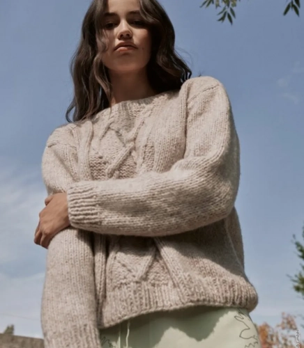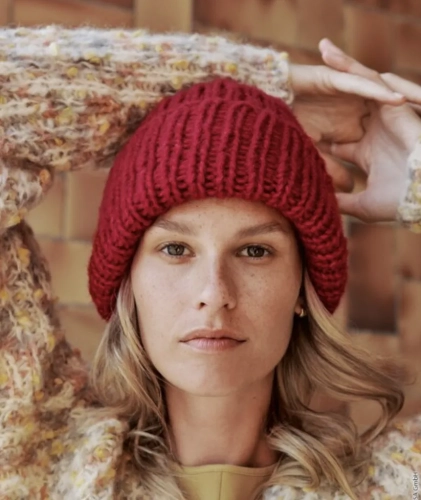 Для шапки понадобится два мотка, на джемпер 10-11 мотков. Размер образца из одного мотка 25х35см.