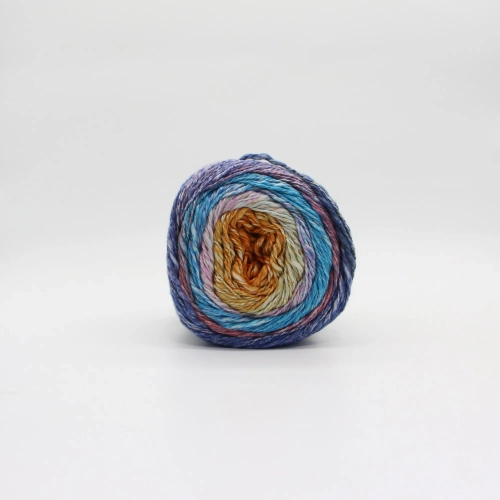 Смесь хлопка с вискозой и эффектом фламе выгодно смотрится в вязании крючком и спицами. Оттенки расбеленно-секционные, слегка сияющие. Пряжа мягкая с метражом в мотке 260 метров.
