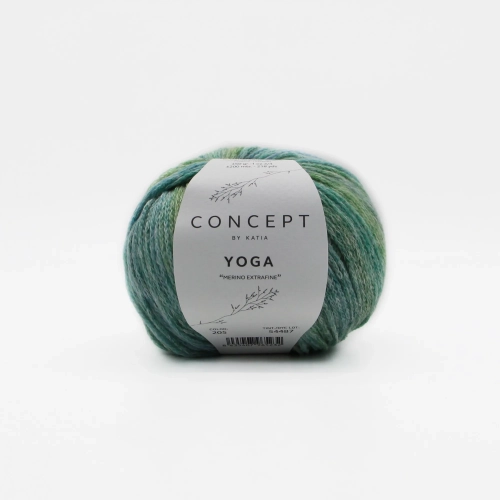 Пряжа цепочка Yoga Katia из хлопка и мериноса. Расцветки с короткой секцией. Пряжа мягкая, подойдет для чувствительной кожи. Красиво укладывается в узоры. Вяжите из нее уютные свободные джемпера, жилетки и головные уборы.