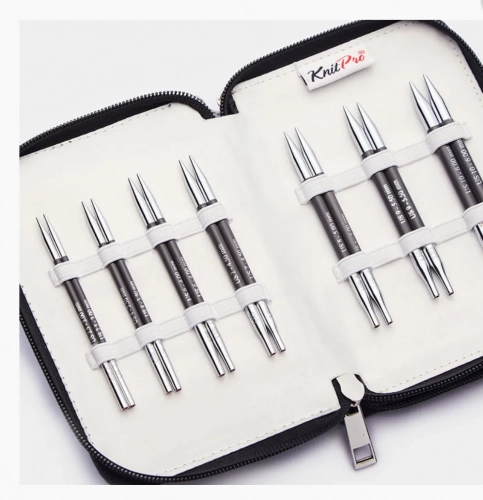 В наборе: органайзер серый – ткань тиси, спицы съемные 7 пар (3мм, 3,5мм, 4мм, 4,5мм, 5мм, 5,5мм, 6мм, длина 10см) - карбон, тросик поворотный 4шт (40см – 2шт, 50см – 2шт) - нержавеющая сталь с нейлоновым покрытием, заглушки 8шт - пластик, кабельный ключик 4шт - металл