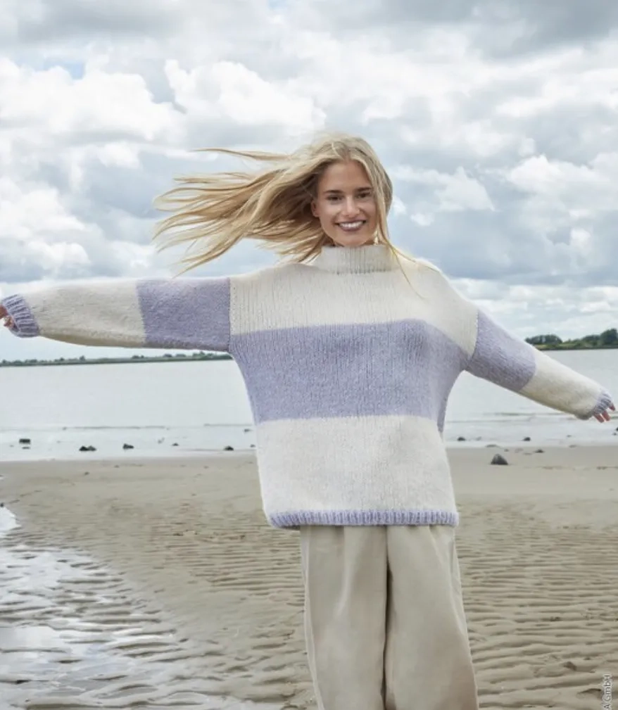 Для шапки понадобится два мотка, на джемпер 10-11 мотков. Размер образца из одного мотка 25х35см.