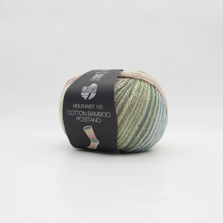 Секционная пряжа из хлопка и вискозы для вязания носков. Лений состав. С эластичной нитью, благодаря которой петельки плотно прилегают друг к другу. На носки до 46 размера расход один моток.