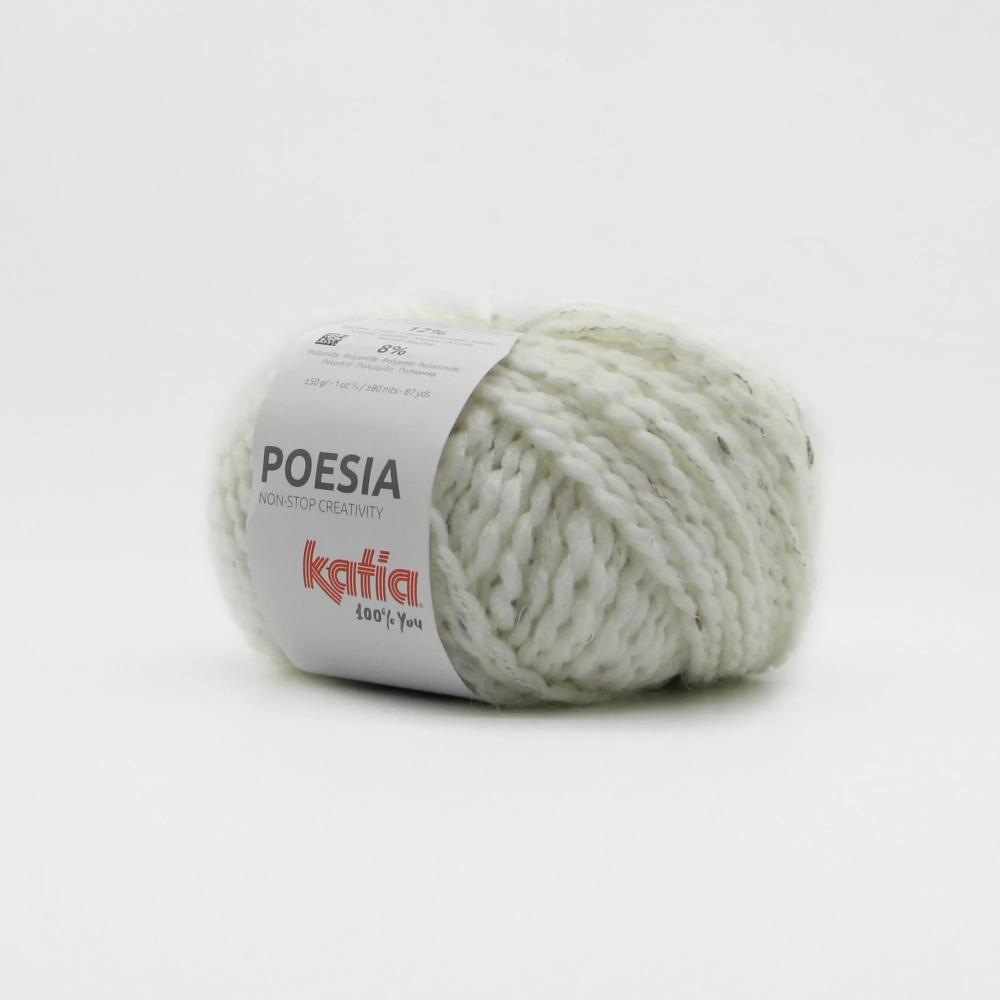 Мягкая шерсть с хлопком волнистой структуры. Полотно усыпано твидинками - прошитыми узелками. Подойдет для чувствительной кожи и вязания изделий детям. Из Poesia получится прекрасный плед или джемпер с узорами.