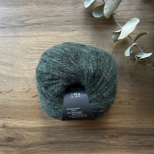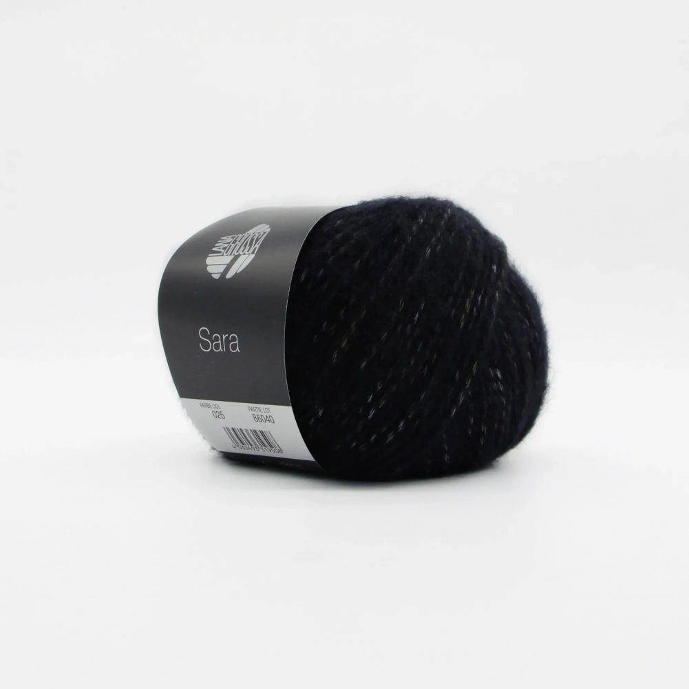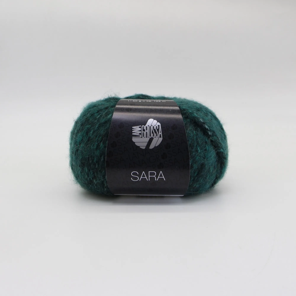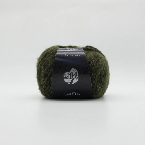 Пряжа с цветным меланжем Sara Lana Grossa. Подойдет для вязания кардиганов, джемперов и аксессуаров с узорами или лицевой гладью. Мягкая на ощупь, приятно согревает в холодное время года. Для вязания шапки понадобится два мотка, для джемпера от 7 мотков.