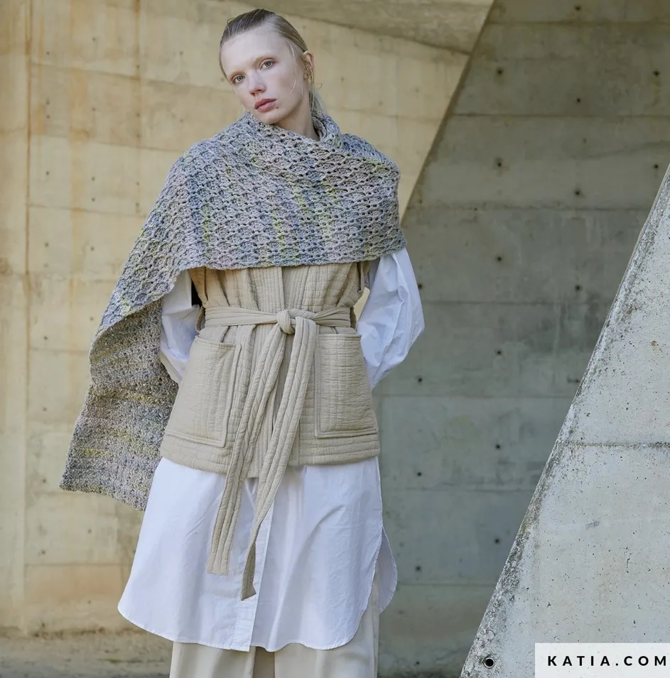 Пряжа цепочка Yoga Katia из хлопка и мериноса. Расцветки с короткой секцией. Пряжа мягкая, подойдет для чувствительной кожи. Красиво укладывается в узоры. Вяжите из нее уютные свободные джемпера, жилетки и головные уборы.